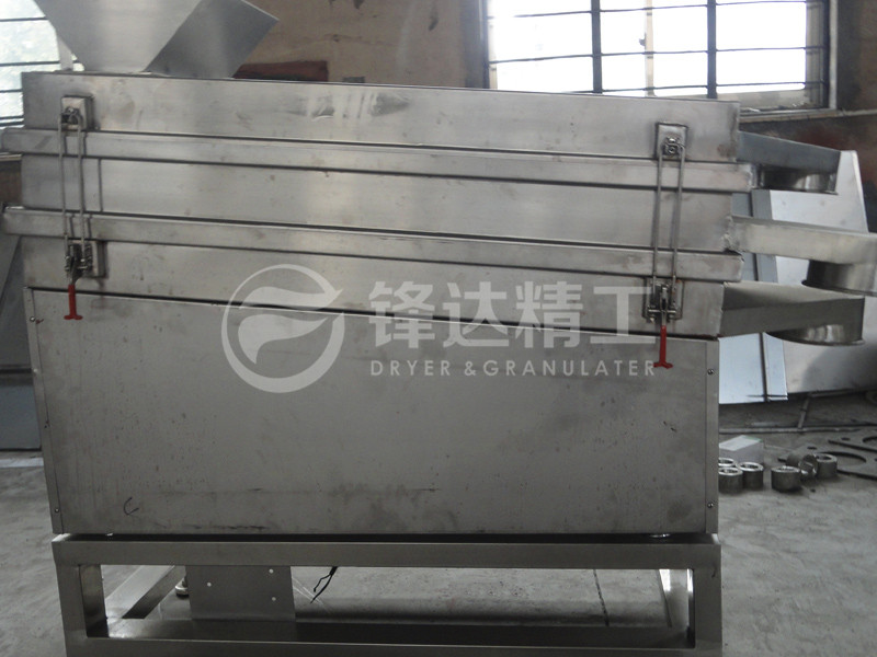 The machine is composed of three parts: the screen box at the inlet and outlet, the vibration source and the shock absorber. The machine base and screen box are connected with 4-6 sets of soft rubber shock absorbers which are fixed up and down. Centrifugal force is generated when the machine is started. The amplitude is controlled by eccentric blocks and shock absorbers, so as to achieve the required working performance and make the material have a shock-proof and loose screening process. Ideal equipment for screening in pharmaceutical, food, chemical, metallurgical, electronic and other industries.